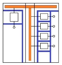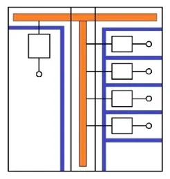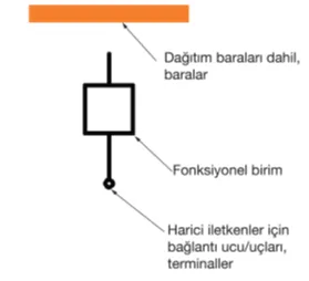 Fonksiyonel birimler baralardan (ana bara, dağıtım barası) ayrılmıştır.