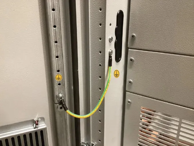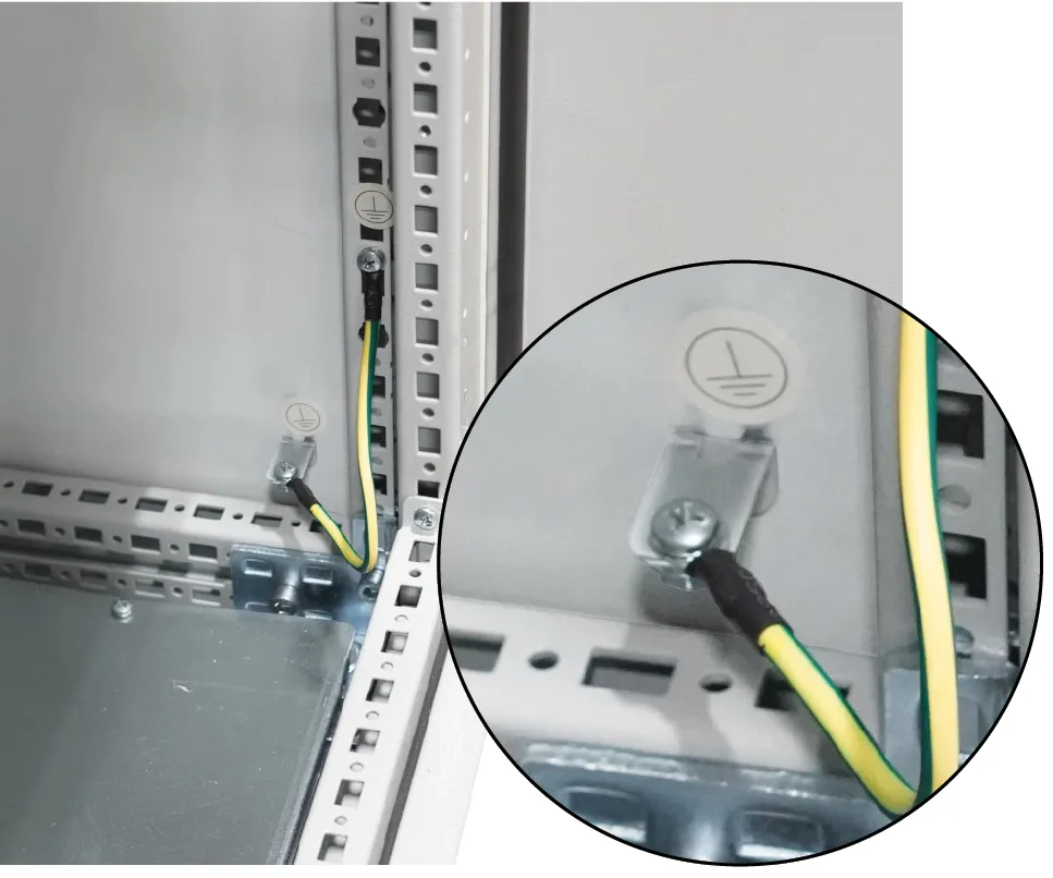 The integrated contacting feature of EAE E-Kabin enclosures ensure a contacting connection between all elements. All elements are made of galvanized sheet steel even if they are painted for esthetical reasons and do not rust under normal conditions preventing resistive contacting.